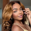 ELVA Single Byebye Knots Brown Highlight Body Wave Wave Ear-to-ear Glueless 13x4 Frontal HD Lace Wig Pre-Cut Lace (w241)